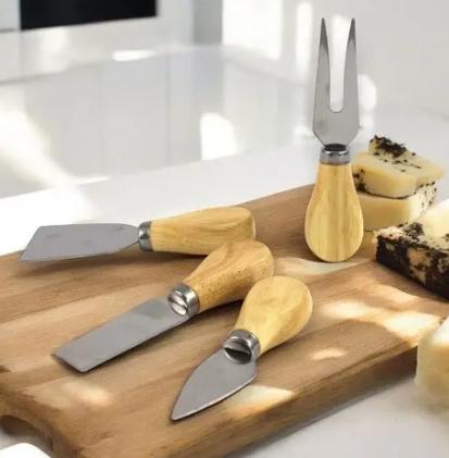Cheese knives, with polished handles and elegant finishes, make thoughtful gifts. A set symbolizes sophistication and attention to culinary craft.
