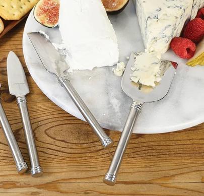 Cheese spreaders are designed for soft, spreadable cheeses. They typically have a blunt edge and a wide blade, making it easy to scoop and spread cheese onto crackers or bread. Examples include cream cheese and Boursin.